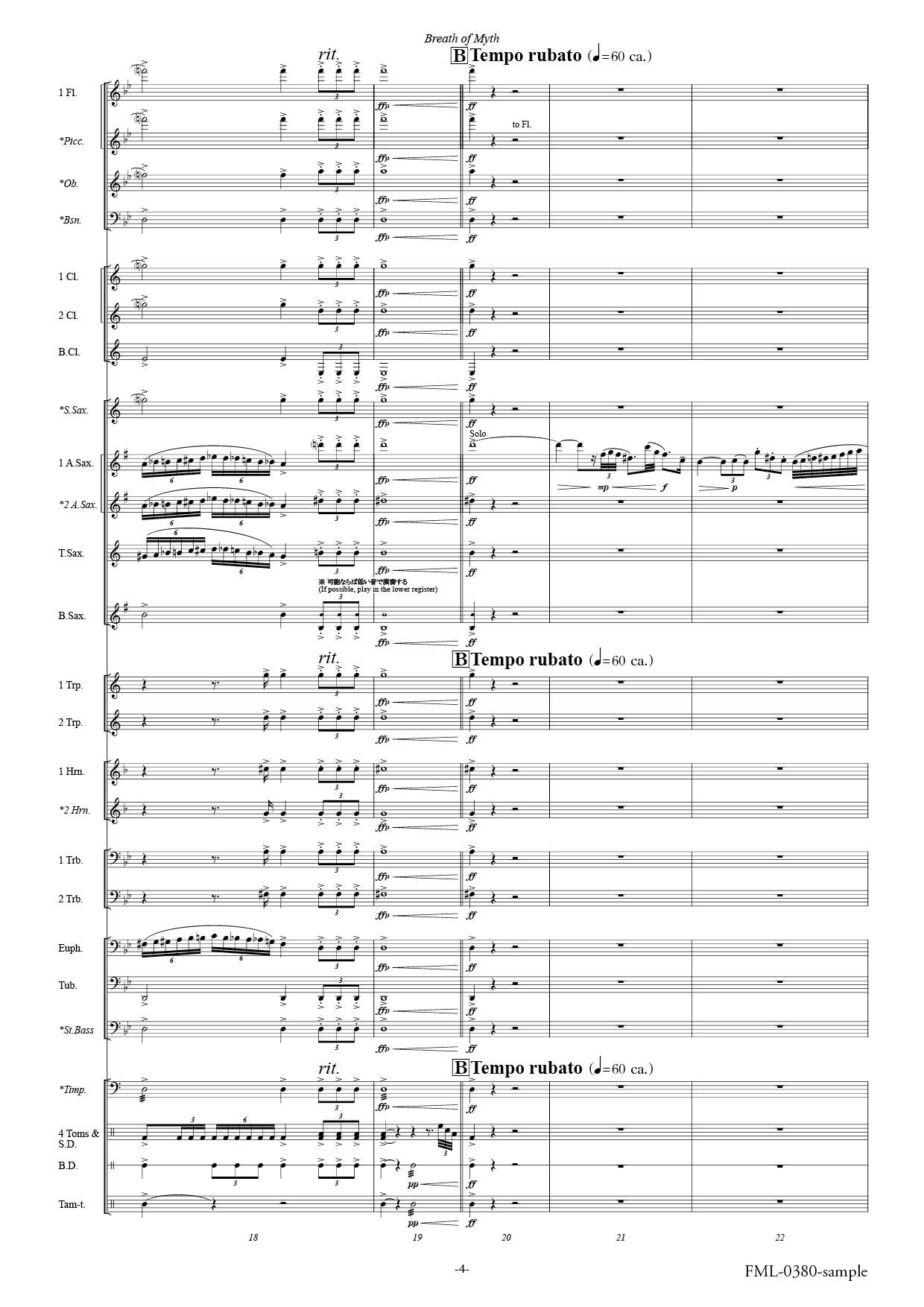 Traditional Japanese instruments are employed in the percussion section, and alternative instruments are indicated where appropriate. Each ensemble may select suitable options according to its instrumentation and performance environment.