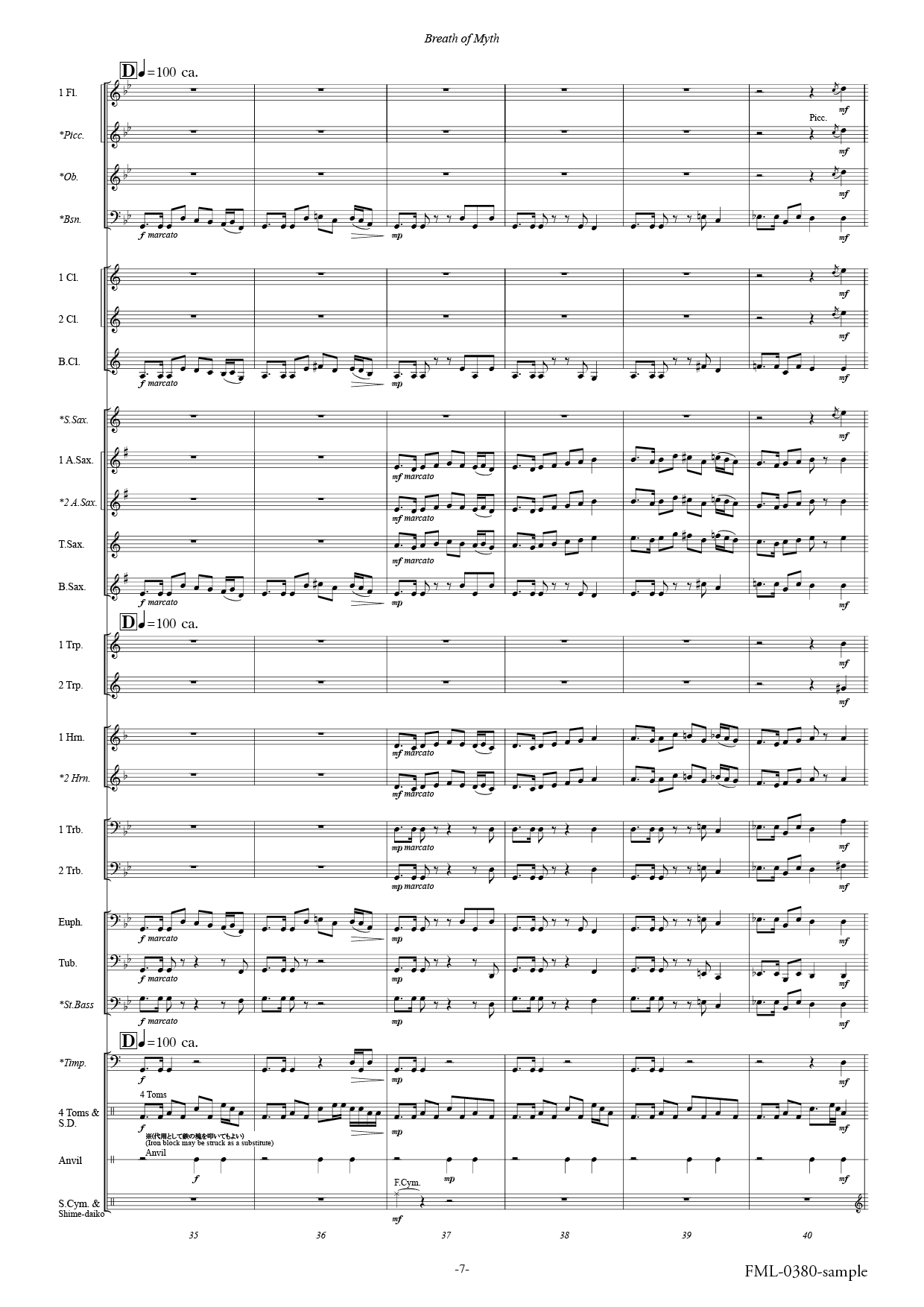 The opportunity to compose this work arose from an earlier connection with the same band, which had previously performed my piece Kamui. My meeting with their former director, Mr. Kazushi Nishiyama, led to a valued professional relationship. When Ms. Maki Nishi succeeded him as director, I was introduced to her, and this transition created the occasion for the present commission. Music contains stories within itself; at the same time, the path that leads to the creation of a work also tells a story. In this sense, Breath of Myth may be said to have emerged from a chain of meaningful connections.