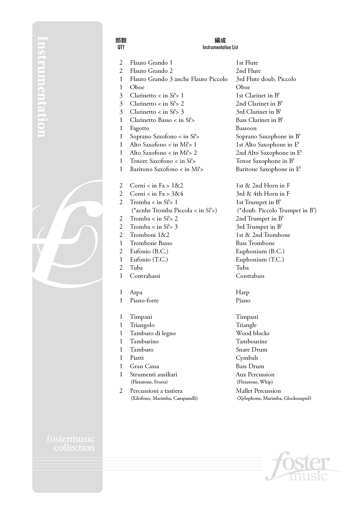 また、楽譜に記載されている練習番号はオーケストラ・スコア(全音楽譜出版社/ISBN:4118926652)に準拠しています。