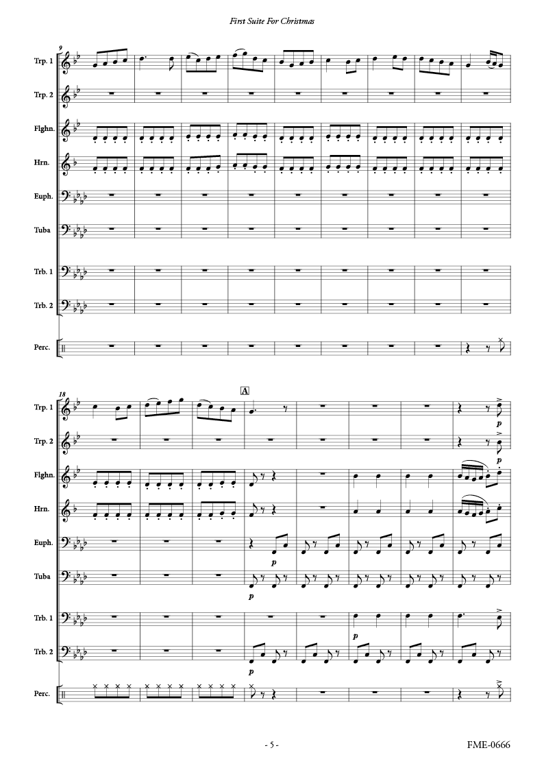 5つのクリスマス・キャロルを、吹奏楽がお好きな人であれば二度美味しい「どこかで聴いたことがある」感じの組曲として金管八重奏と打楽器のためにアレンジしました。