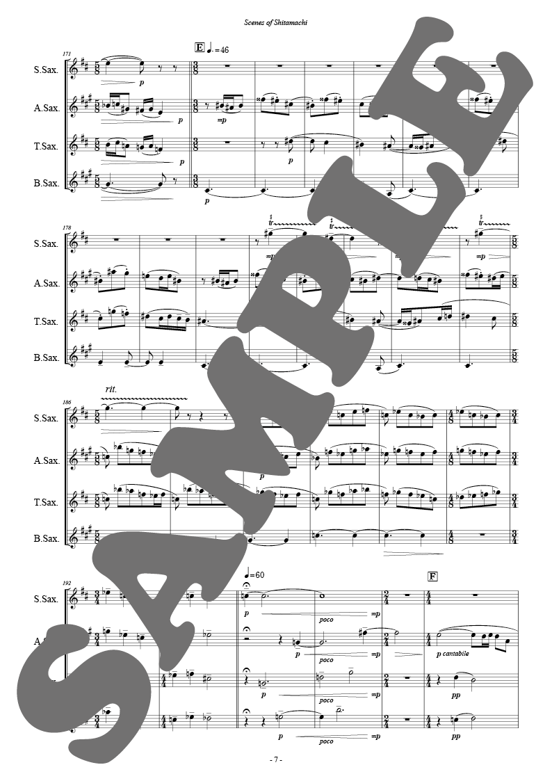 下町で人々が賑わう印象をサキソフォンカルテットの小品というかたちで表現しました。