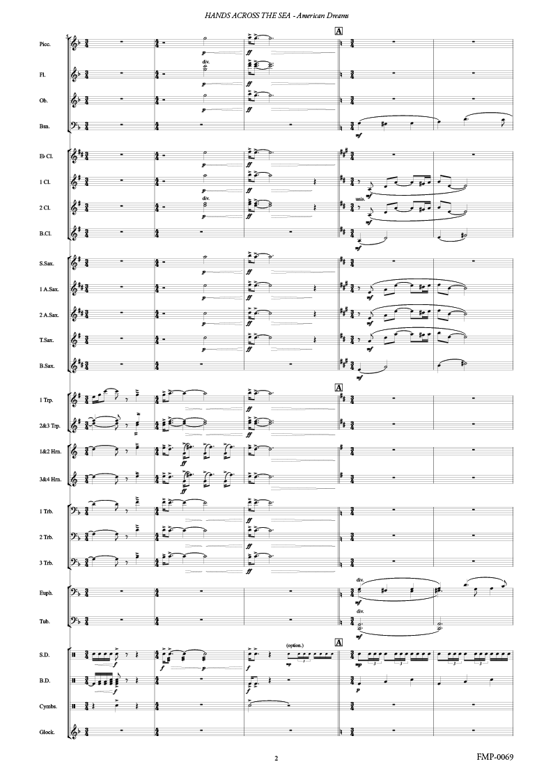 スーザ「海を越える握手」、ガーシュウィン「ラプソディ・イン・ブルー」を中心に、いくつかのアメリカに関する作品(南太平洋など)のエコーも聴こえる4曲の組曲として構成されています。また「海」つながりで、1曲目には、私の「ファンファーレS・E・A」の一部分も引用されています。
