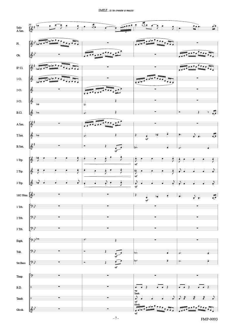 この作品は2020年に海上自衛隊呉音楽隊の委嘱により書き始め同年12月に完成した7分半ほどの作品。また、定年を迎える同音楽隊のコンサートマスターの宮越総己さんのために独奏サクソフォーンと吹奏楽という編成で書き上げました。