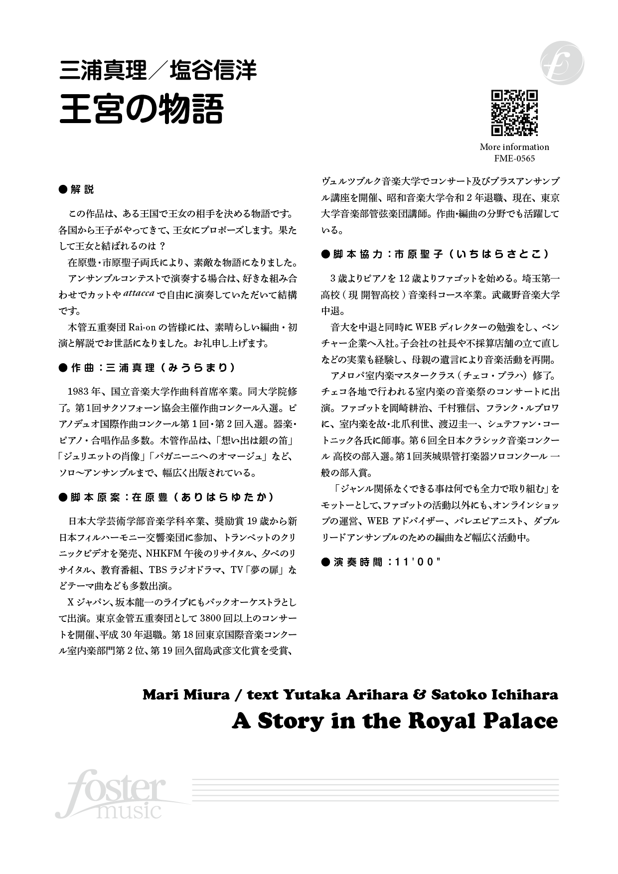 木管五重奏団Rai-onの皆様には、素晴らしい編曲・初演と解説でお世話になりました。お礼申し上げます。(三浦真理)