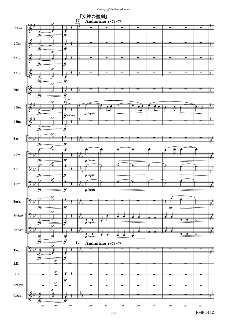 制作&初演にあたり、多くの方達にご協力いただきました。市原聖子(脚本)・深石奏生(ユーフォニアム)・神林慎一(トロンボーン)の各氏。佐々木伊作(千代ヶ丘小学校指揮者)・鈴木健司(トレーナー)の両氏には、楽器についてレクチャーを受け、スケッチ段階からアドバイスいただきました。そして、千代ヶ丘小学校のバンドの皆様、顧問の先生方はじめ、多くの関係者の皆様。「聖剣」チームでコンクールに挑戦した素晴らしい経験でした。これから多くのバンドでお楽しみいただければ嬉しいです。(三浦真理)
