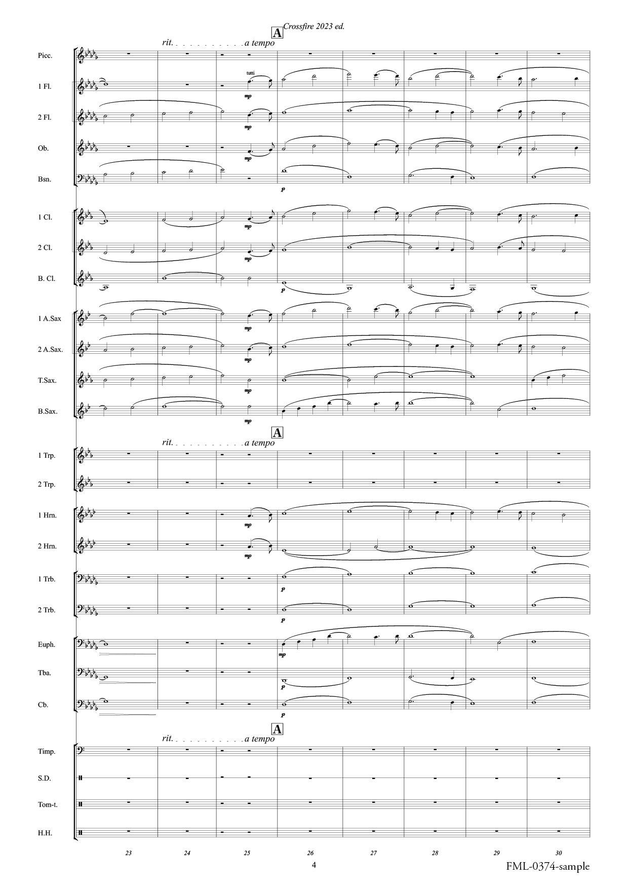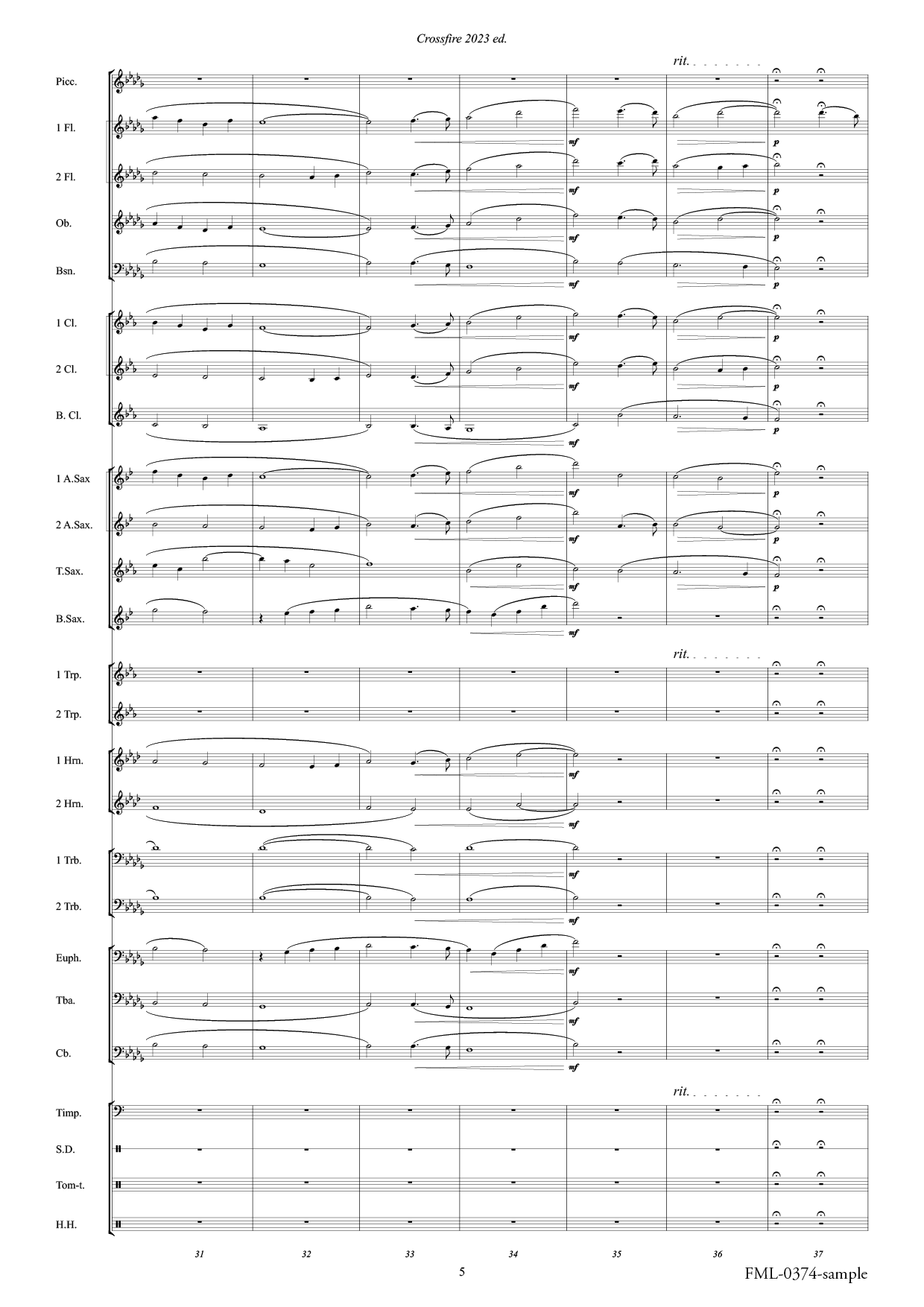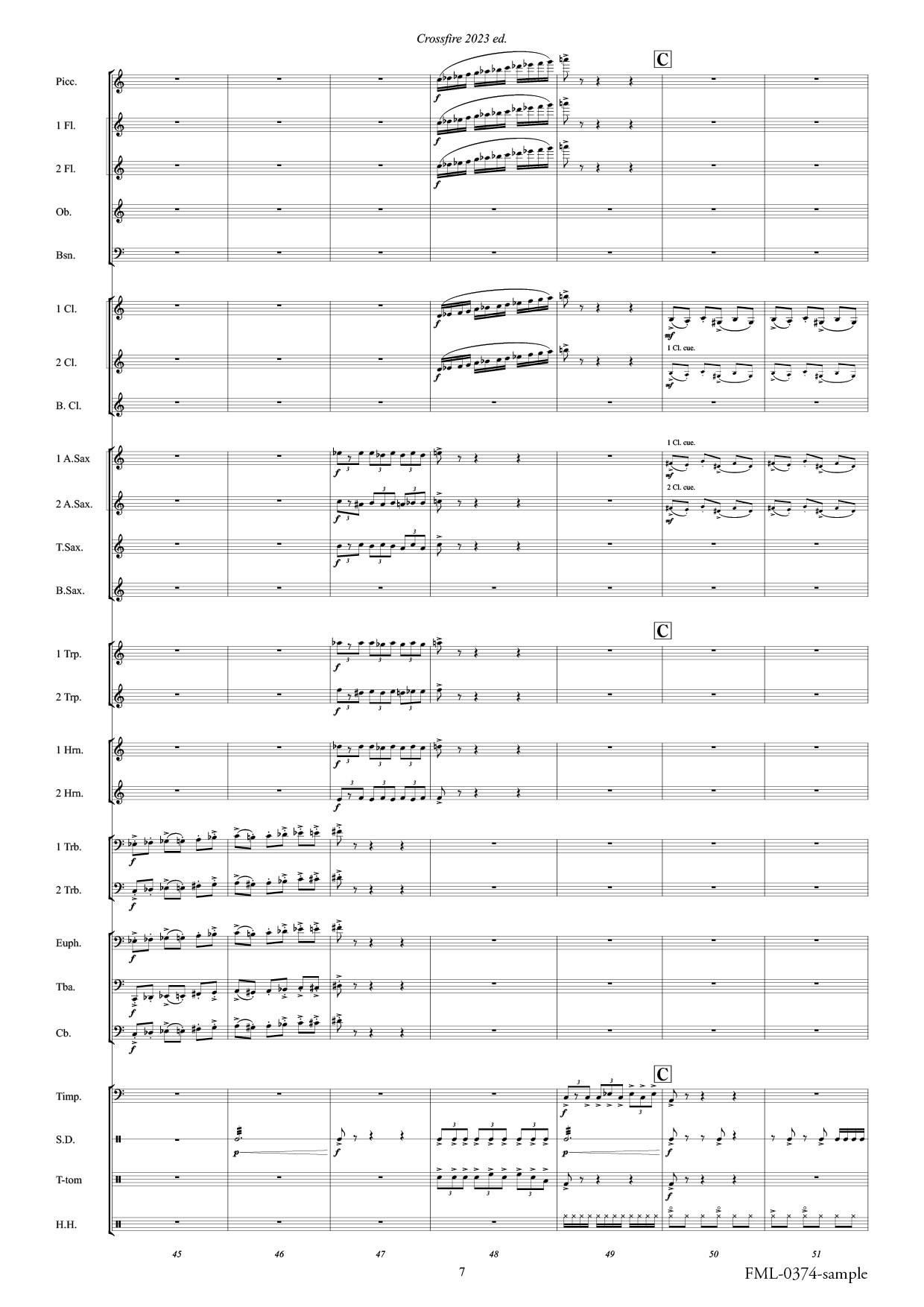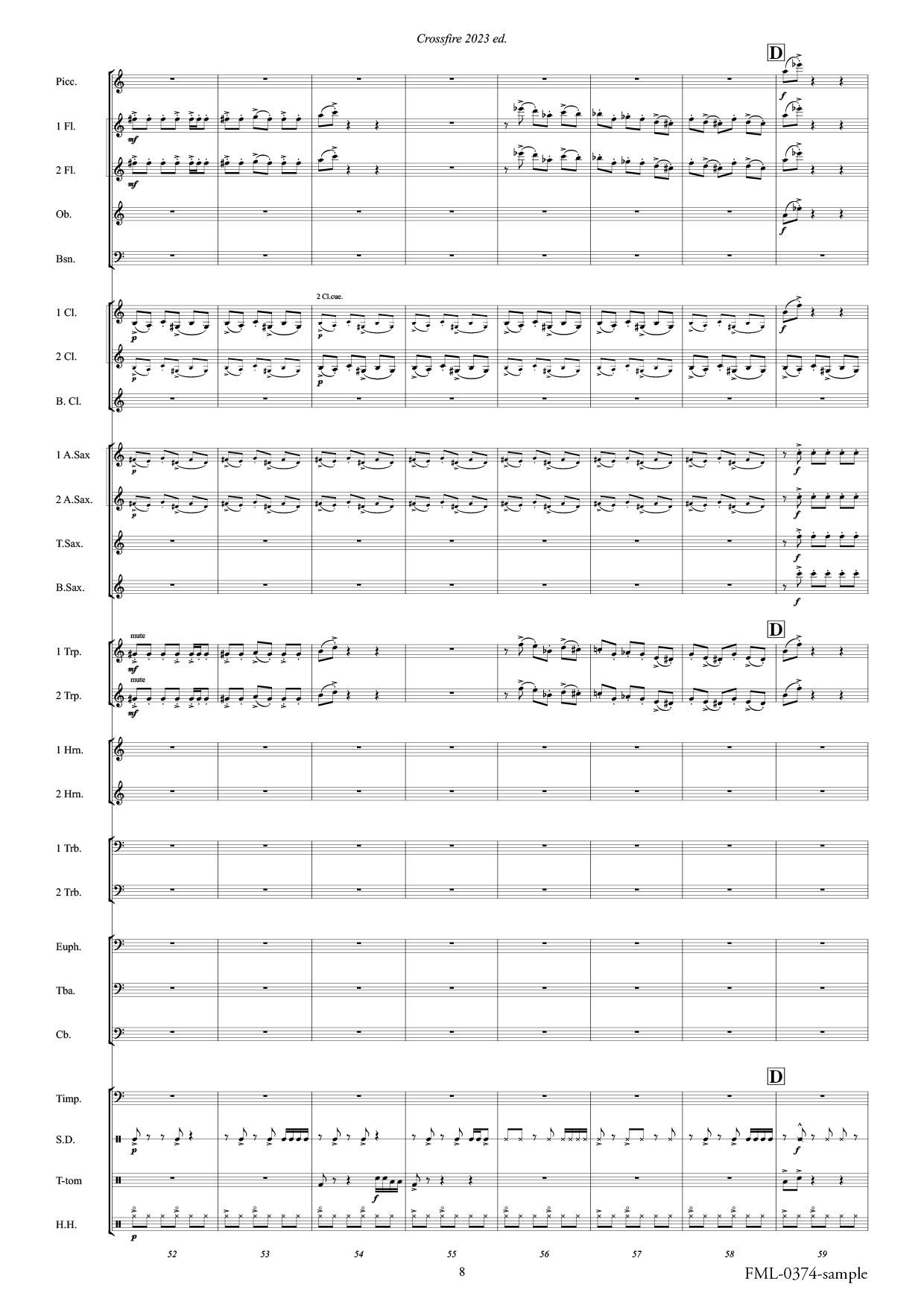 This version is based on “Crossfire 2023 ed. November 22 J.F.K” (FML0357), published in 2024, and features revised orchestration to suit the instrumentation standards of the All Japan Band Competition’s small ensemble division.