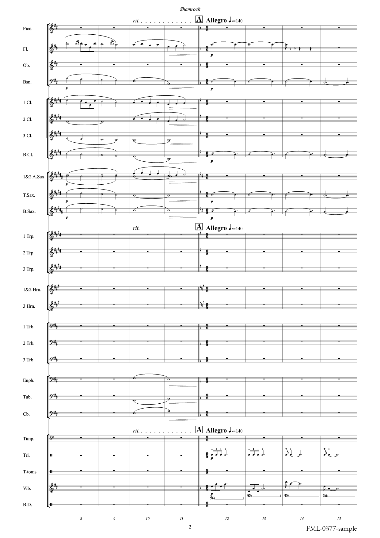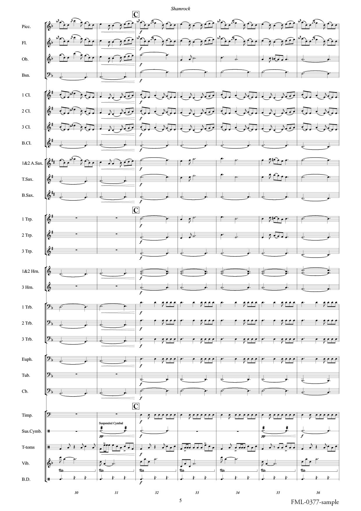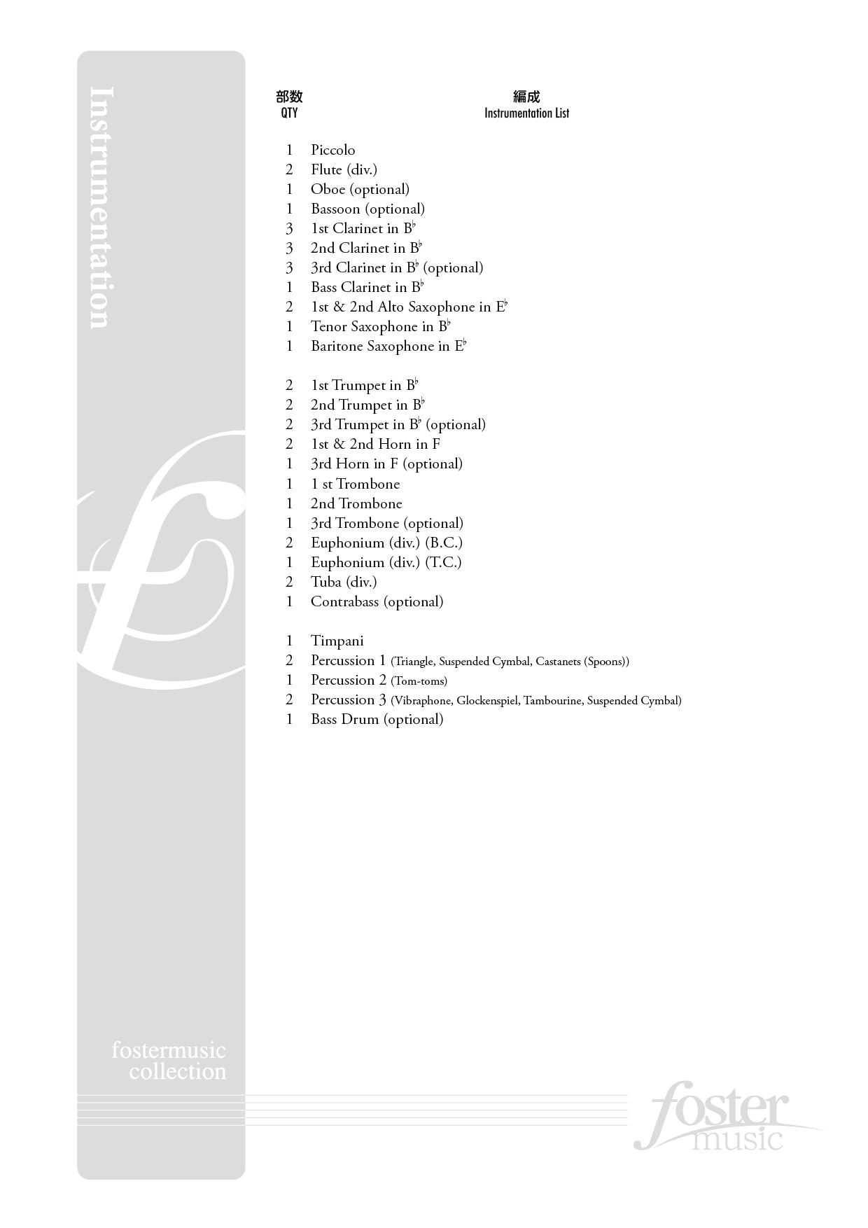 The piece begins at a gentle tempo with fragments of the main theme, gradually increasing in speed and developing into an Irish jig. In the latter half, the entire ensemble sings out a folk songlike theme, bringing the piece to a close.