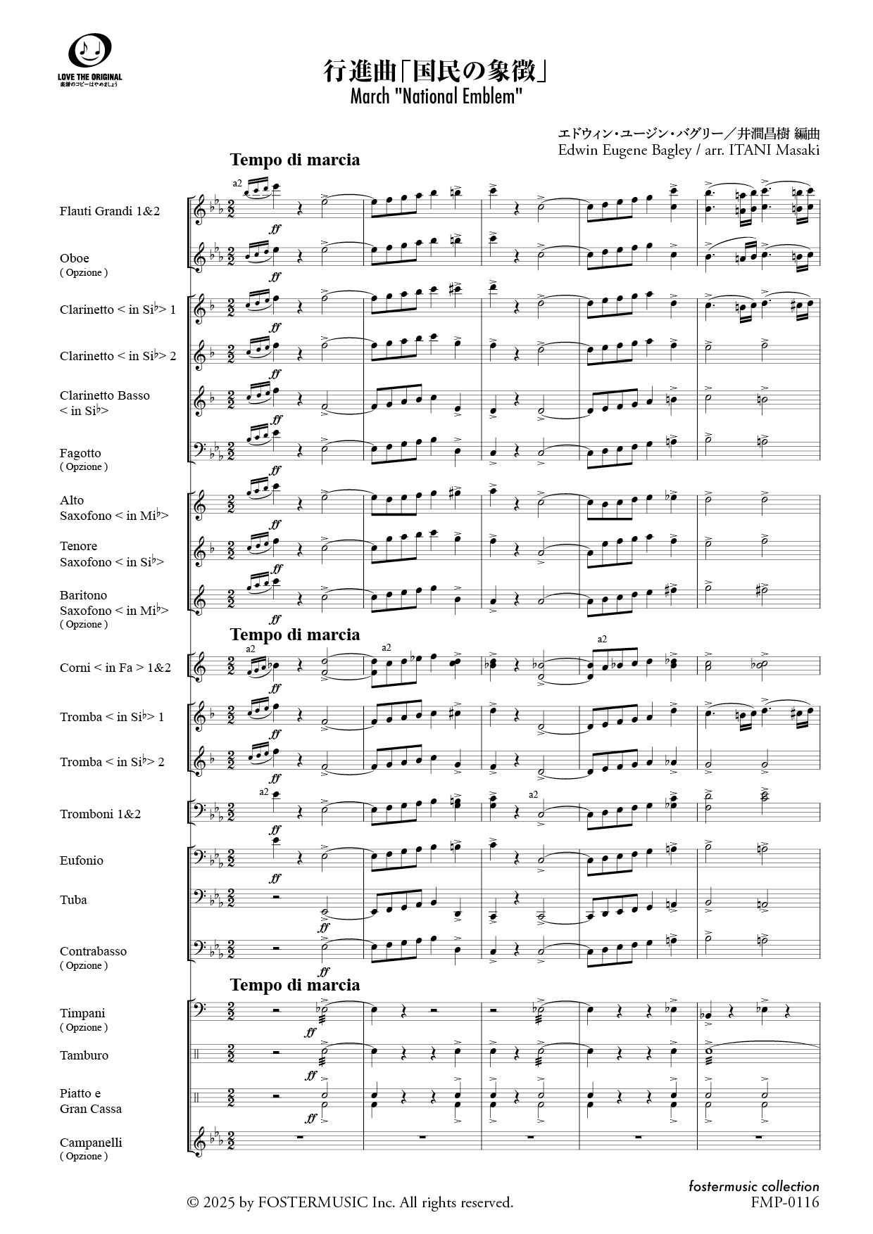 1914年、アメリカの作曲家E.E.バグリーによって書かれた行進曲「国民の象徴」は、長年にわたり式典や行事で親しまれてきた名曲です。堂々としたファンファーレ、力強いマーチ主題、そして優美な中間部が織りなすコントラストは、洗練された高揚感を与えます。