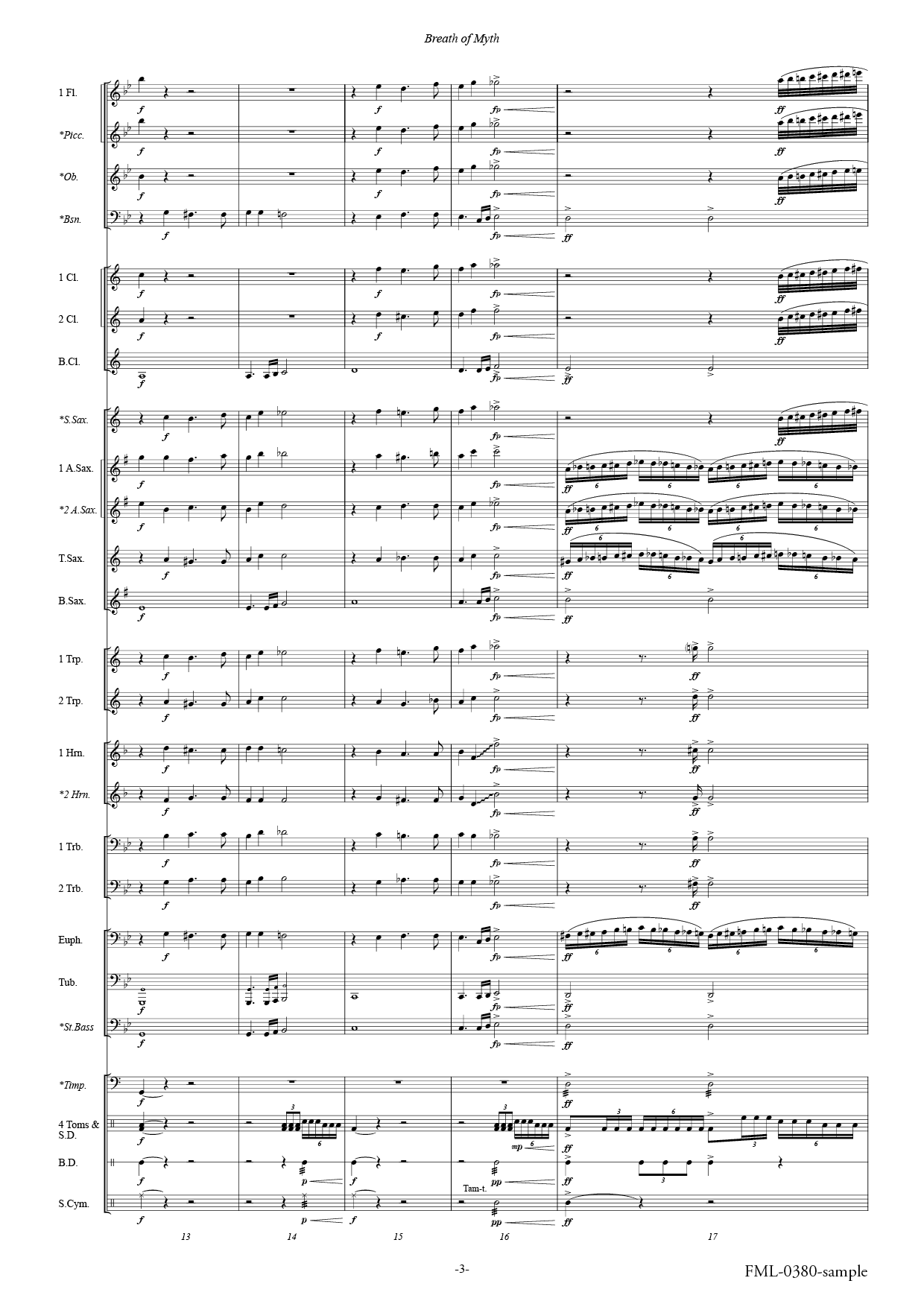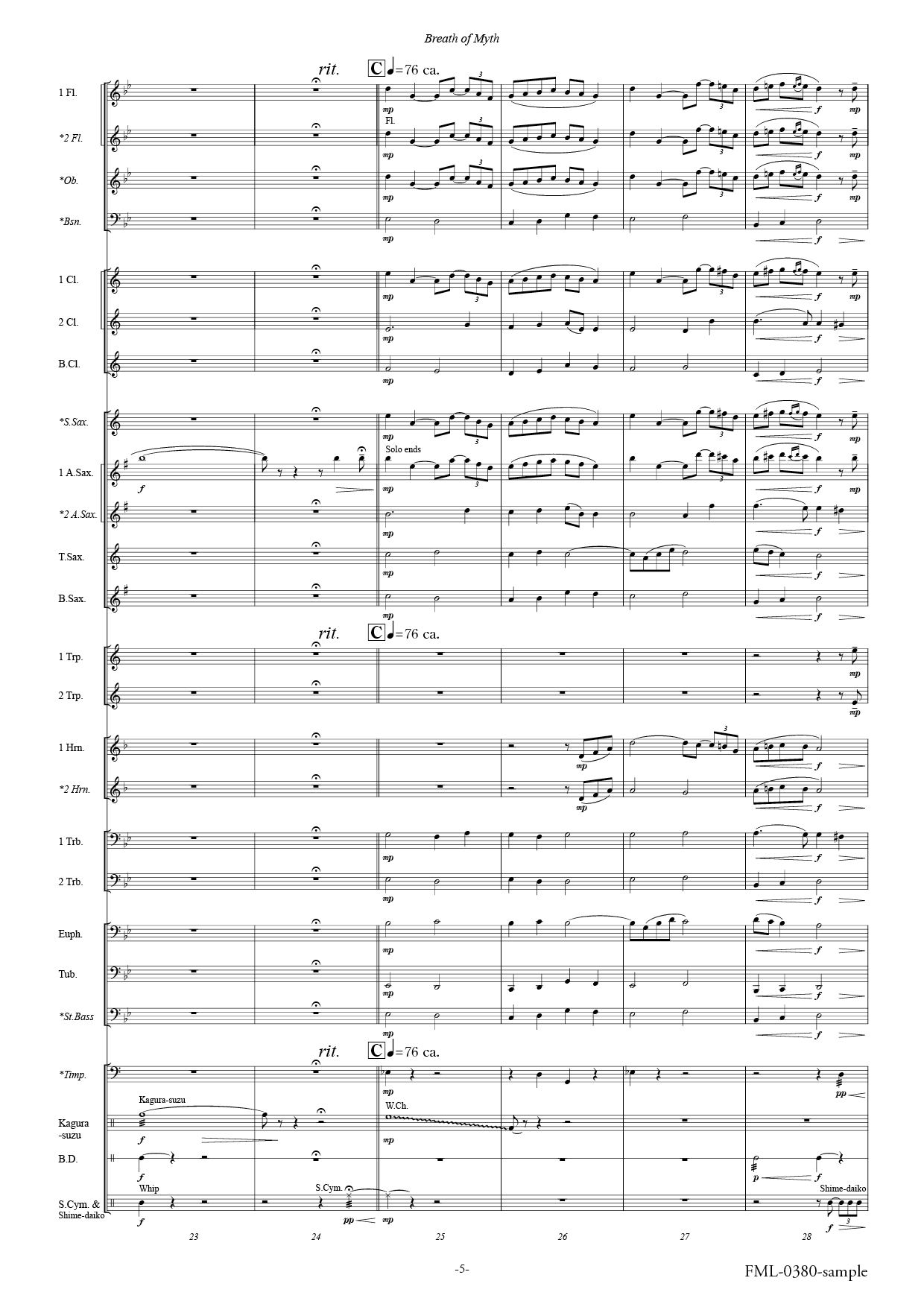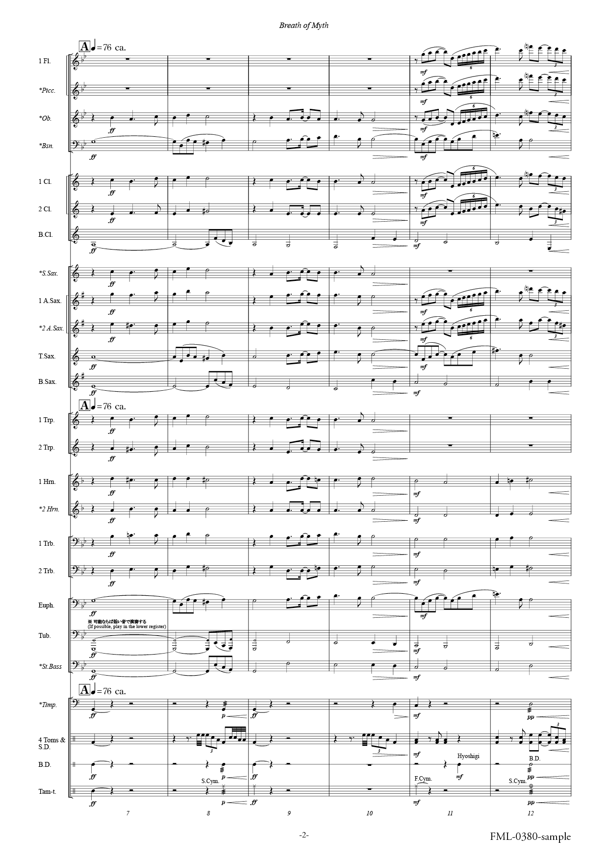 The opportunity to compose this work arose from an earlier connection with the same band, which had previously performed my piece Kamui. My meeting with their former director, Mr. Kazushi Nishiyama, led to a valued professional relationship. When Ms. Maki Nishi succeeded him as director, I was introduced to her, and this transition created the occasion for the present commission. Music contains stories within itself; at the same time, the path that leads to the creation of a work also tells a story. In this sense, Breath of Myth may be said to have emerged from a chain of meaningful connections.