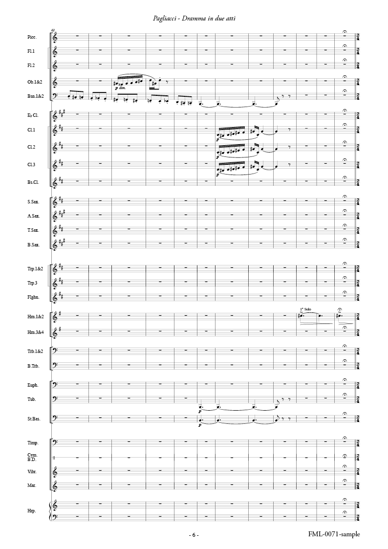 「間奏曲」以外は部分的なカットも施してあります。基本的には調性を含め原曲に忠実な編曲ですが、「もう道化師ではない」にある歌唱パートについては、音域を変える、単音をハーモニーに変える、など、部分的に自由な扱いにして「吹奏楽の魅力」を味わえるように再構築しました。