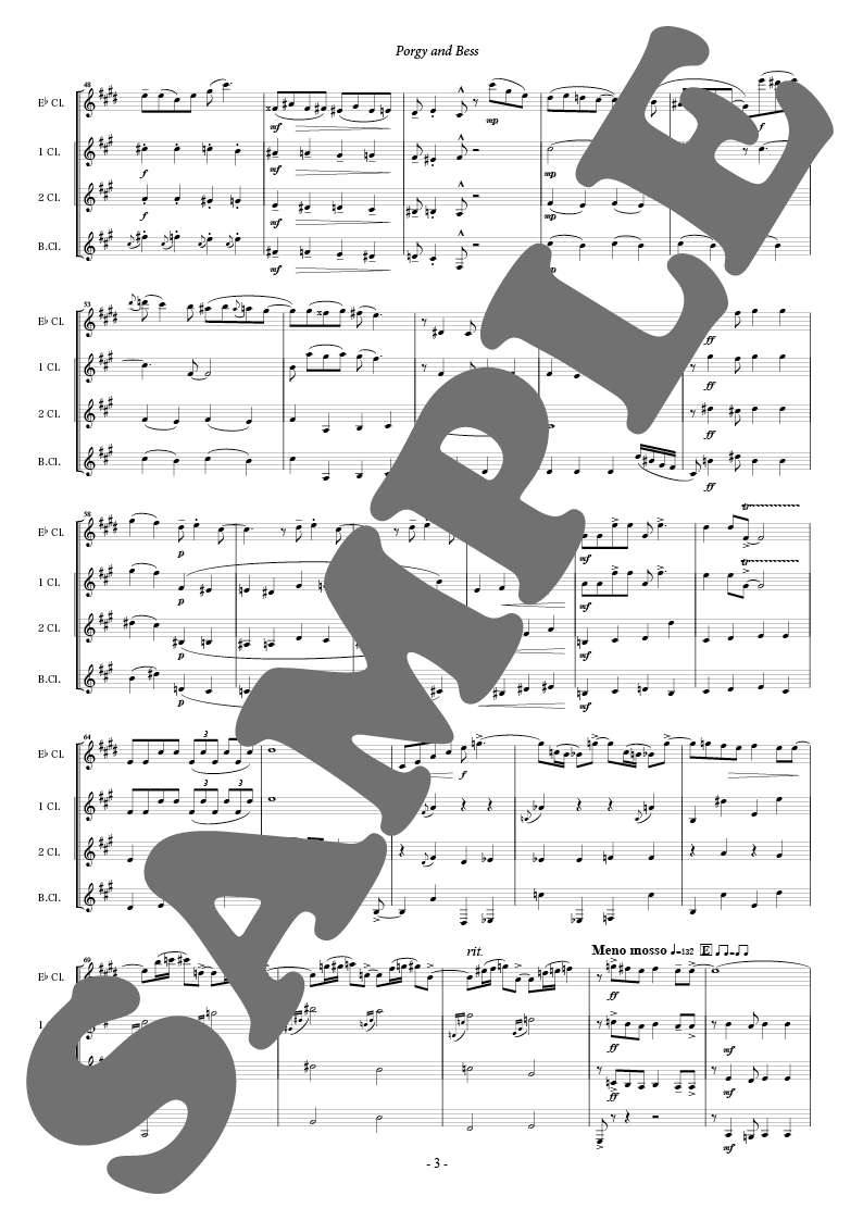 どのパートも忙しいですが十六分音符の流れが途切れないようにしてください。CからはSWINGで、Eの後からイーブンに戻ります。最後大きくrit.してattacaでサマータイムに入ります。