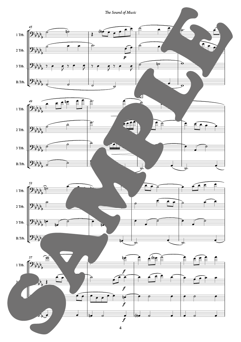 編曲する上で特にこだわったのは、原曲のもつ味わい、メロディーラインの魅力を損なわないよう大切に再現することでした。本来オーケストラのために書かれた作品ですが、トロンボニスト4人でどこまでできるか、ジパングメンバーと何度となくリハーサルを繰り返し、最良の形を作り上げることができました。ミュージカルファンのあなた!トロンボニスト4人でどうぞ「サウンド・オブ・ミュージック」の世界を再現させてください。