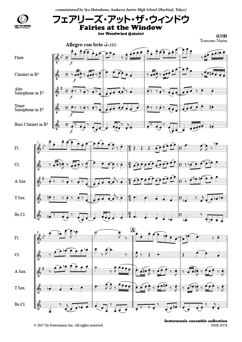 2008年11月、八王子市立浅川中学校吹奏楽部の嘱託指導員、初鹿野翔氏の委嘱により作曲。2009年1月、東京都アンサンブルコンテストに於いて、同部メンバーの演奏により初演。