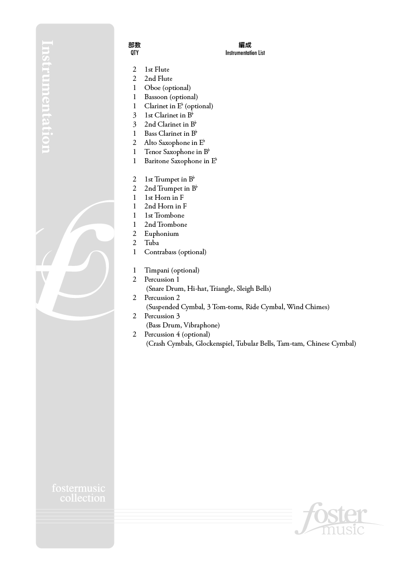 The first half of the piece seeks to present lively music packed with energy along with more lyrical passages, and is unique for its rhythm and the use of extended chords. The middle section features a relaxing melody amidst a gentle swaying rhythm. While this section contains melodic passages for various instruments, its focus is on the lowpitched instruments in particular. The second half of the piece revolves around an unusual atmosphere and a semiquaver motif. These elements give rise to a distinctive rhythm and modulation pattern, and they run all the way until the end of the piece.